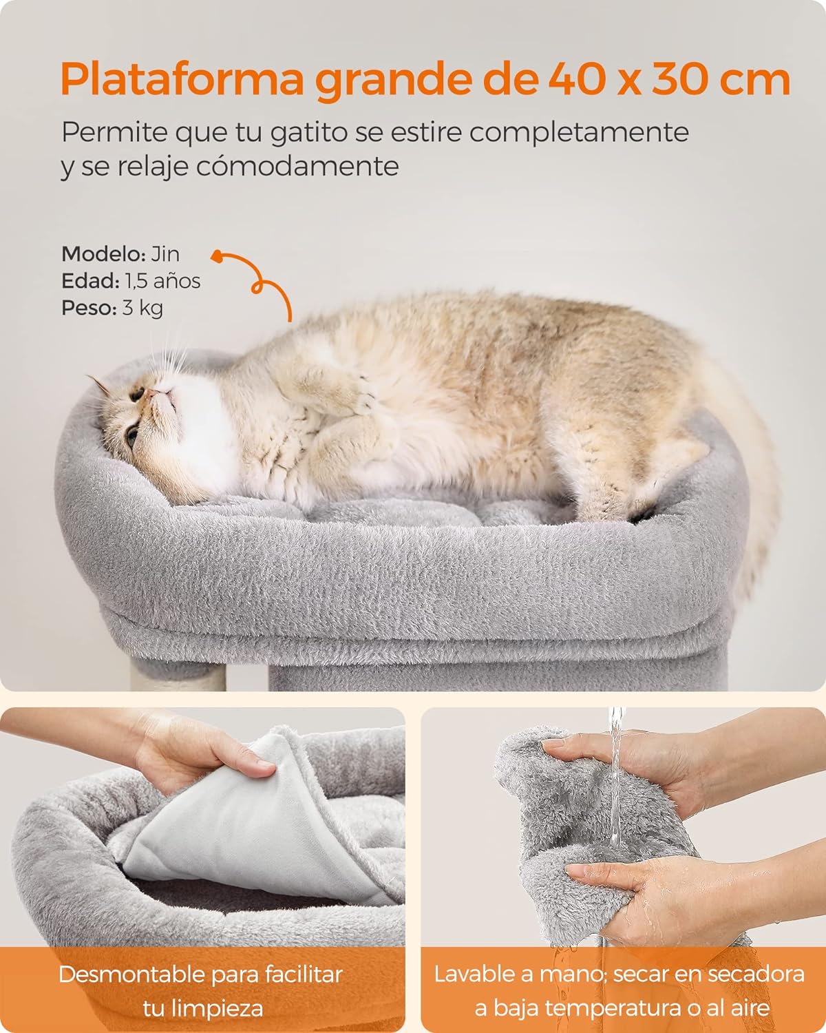 [Amplia plataforma] Este árbol para gatitos cuenta con una plataforma grande de 40 x 30 cm con bordes acolchados, brindando un espacio cómodo y amplio para que tu gatito se relaje y se estire.