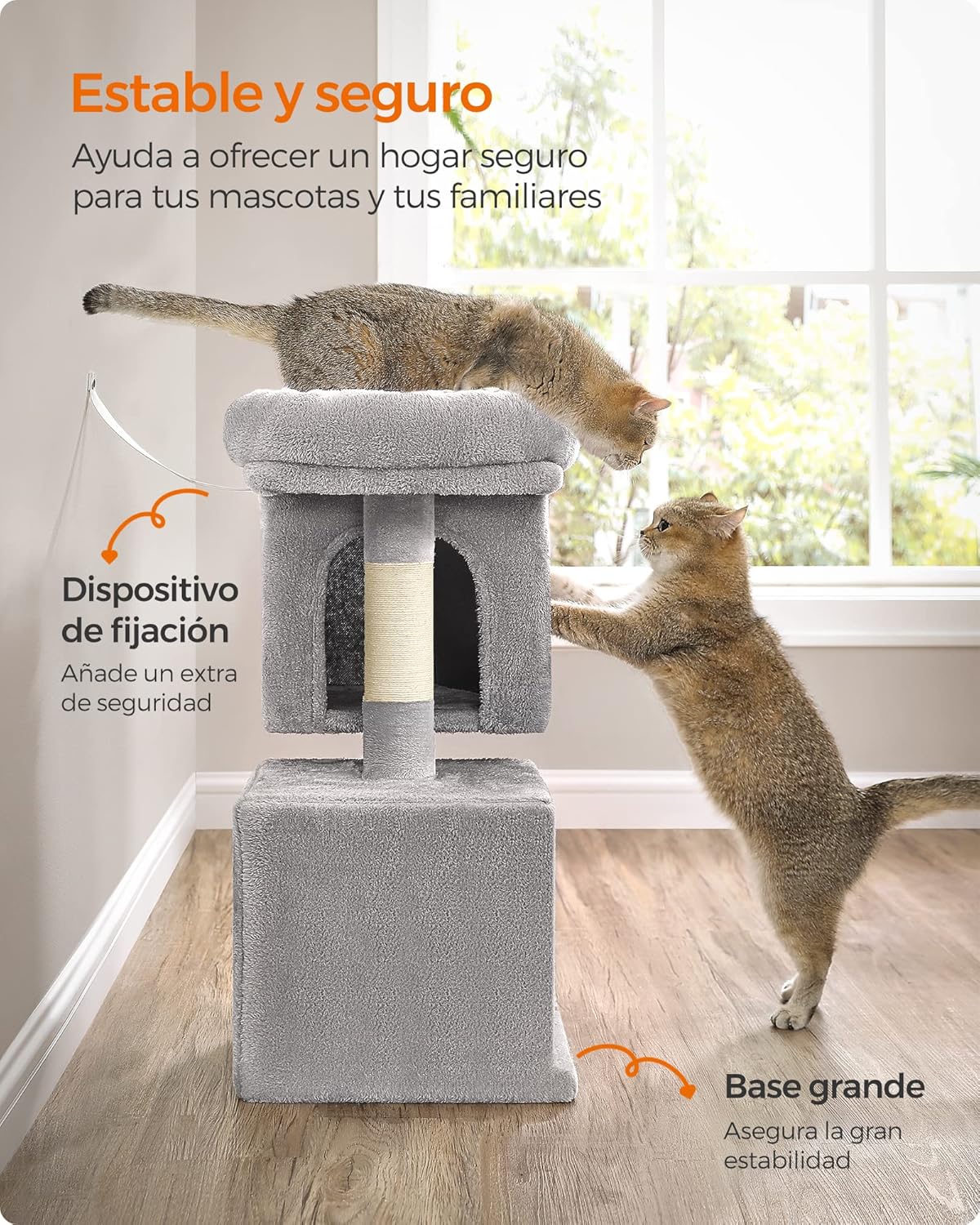 [Estable, duradero y seguro] Construido con tablero de aglomerado resistente, una base amplia para estabilidad y un dispositivo de fijación adicional para mayor seguridad, este árbol para gatos es un espacio de juegos seguro.
