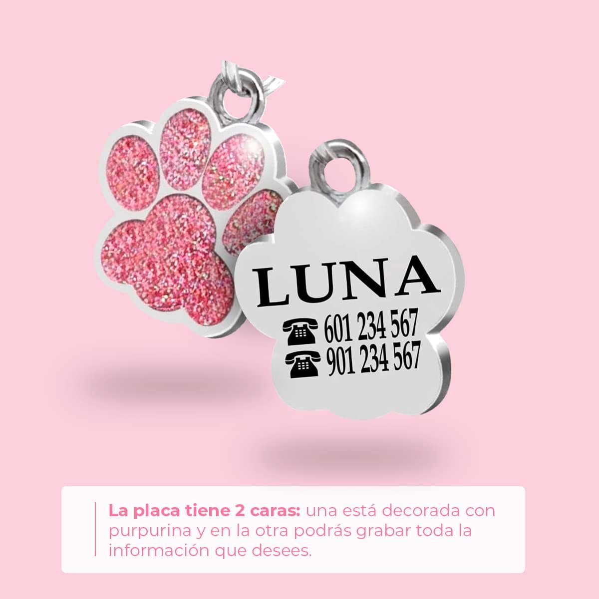 Chapa Perro Grabada en Forma de Pata con Purpurina