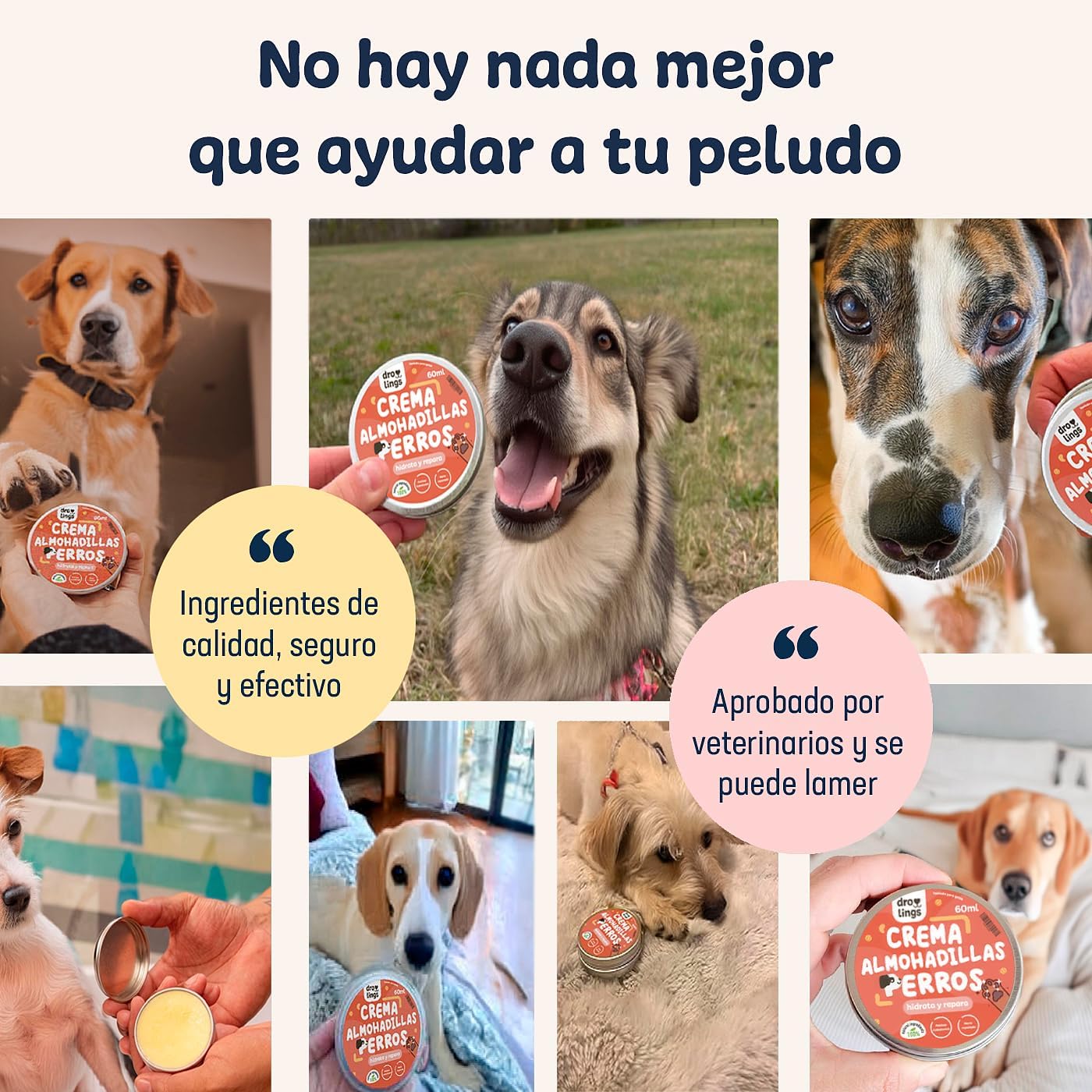 Crema Almohadillas Perros y Gatos, si tu mascota tiene patitas o nariz agrietadas, callos, costras, quemaduras o piel reseca y sensible, este producto le ayudará a calmar y reducir la sequedad, dejándolas suaves e hidratadas.