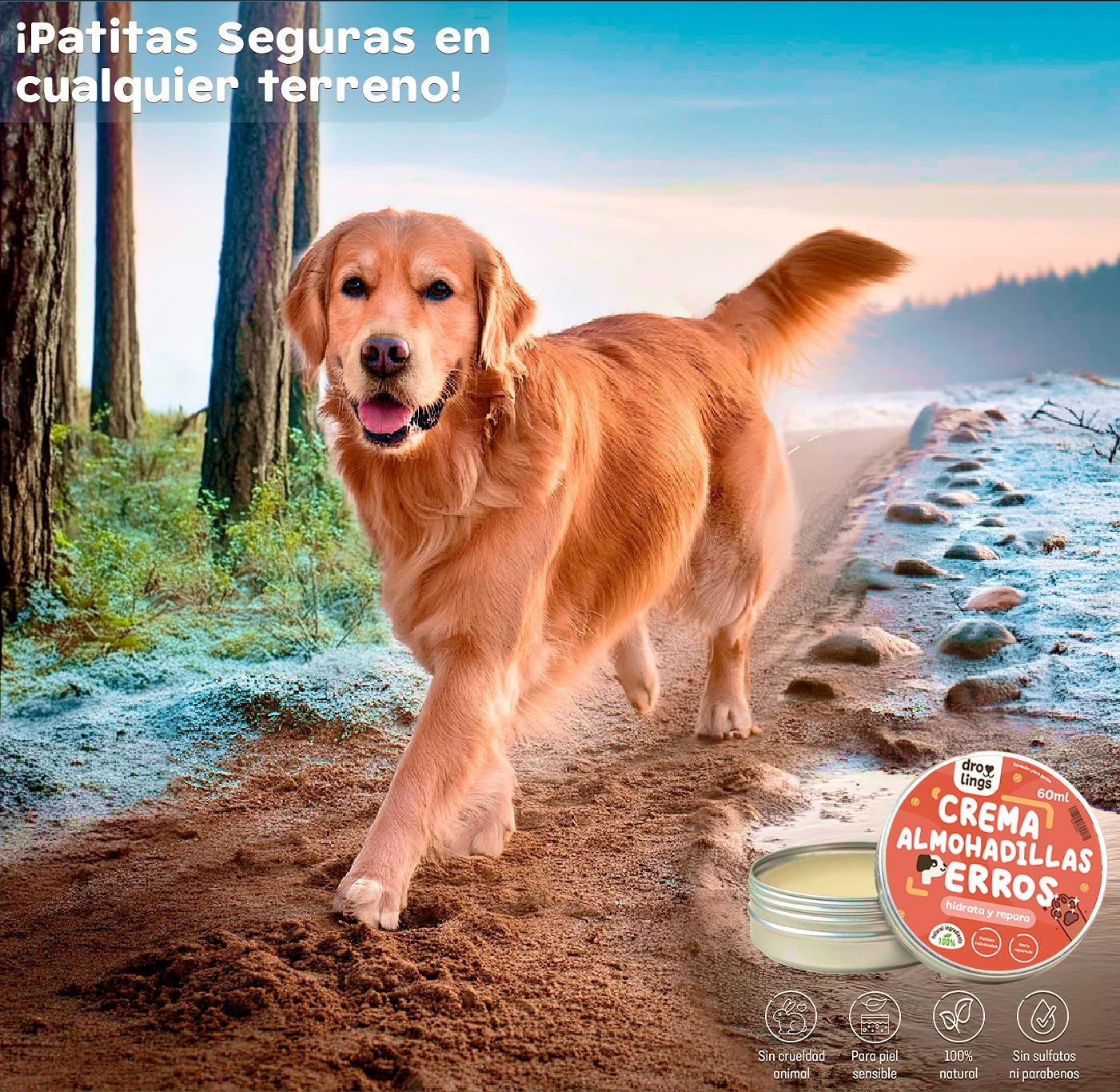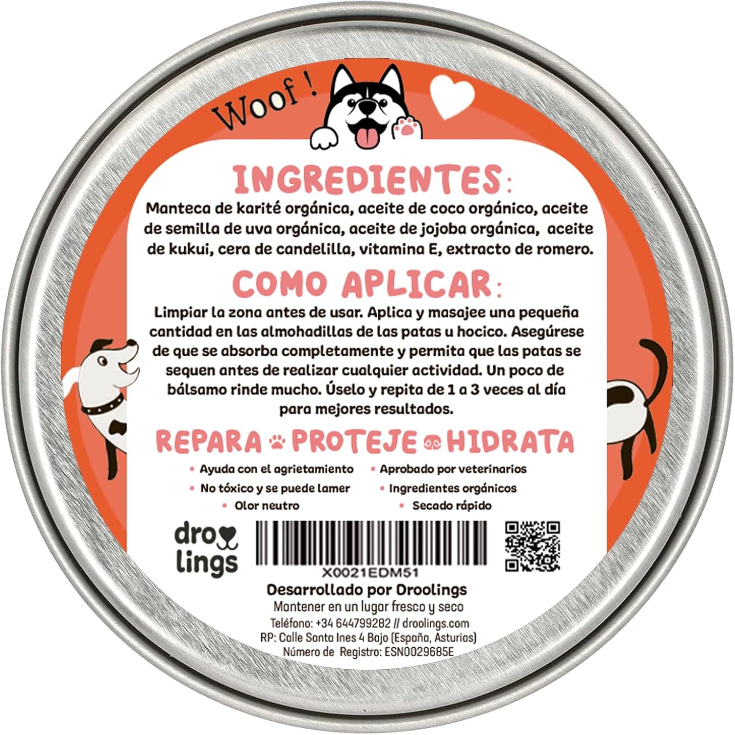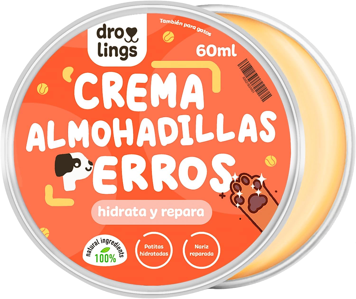 Esta crema hidratante, hecha con aceites naturales, es curativa, protectora, no pegajosa, inodora, segura para lamer y ha sido desarrollada por veterinarios.