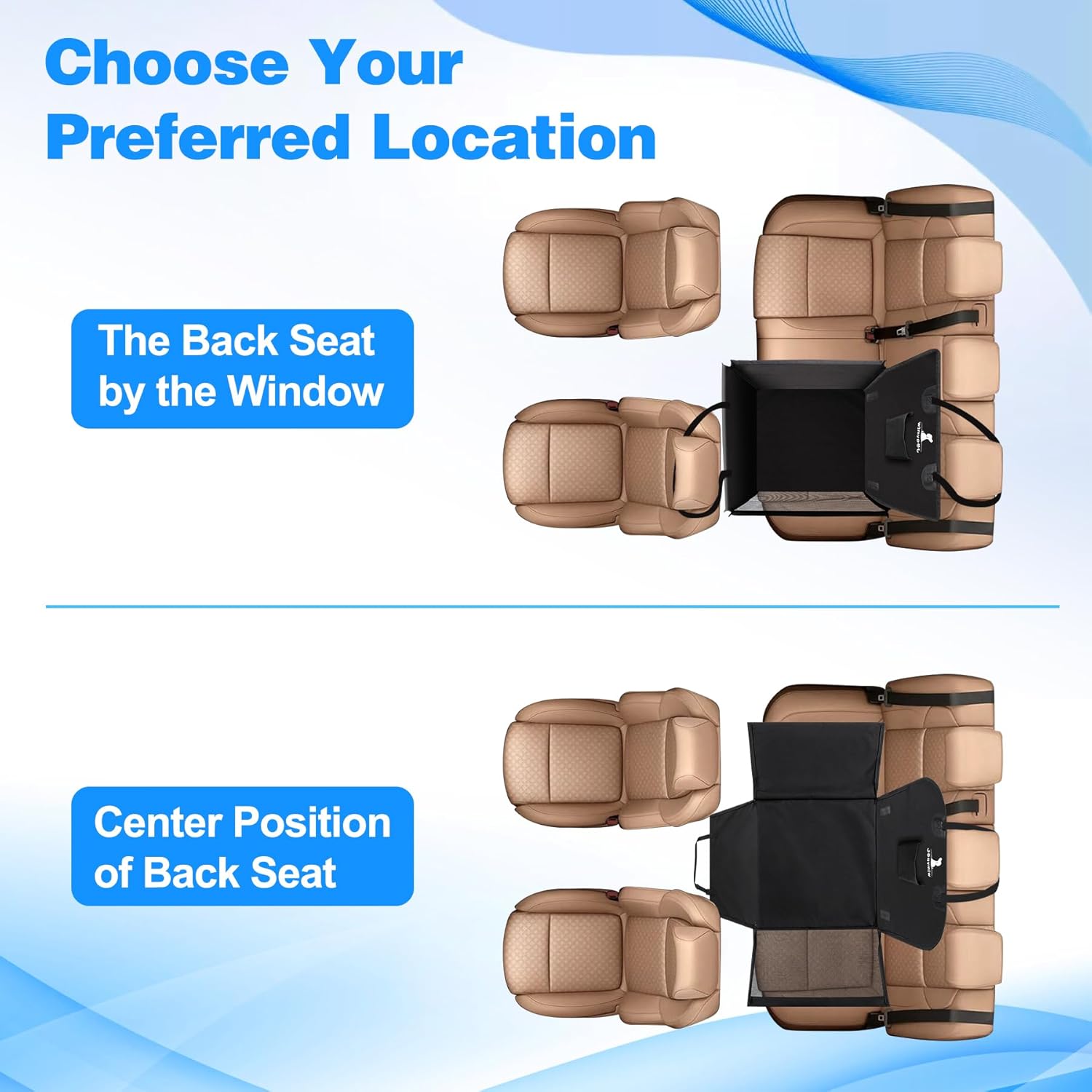 Cinturón de Seguridad: El protector incluye un tubo antideslizante que se inserta en el espacio del asiento y viene con un cinturón de seguridad para perros, que se puede usar para asegurar al perro mientras viaja. Este refuerzo proporciona una protección completa para tu mascota.