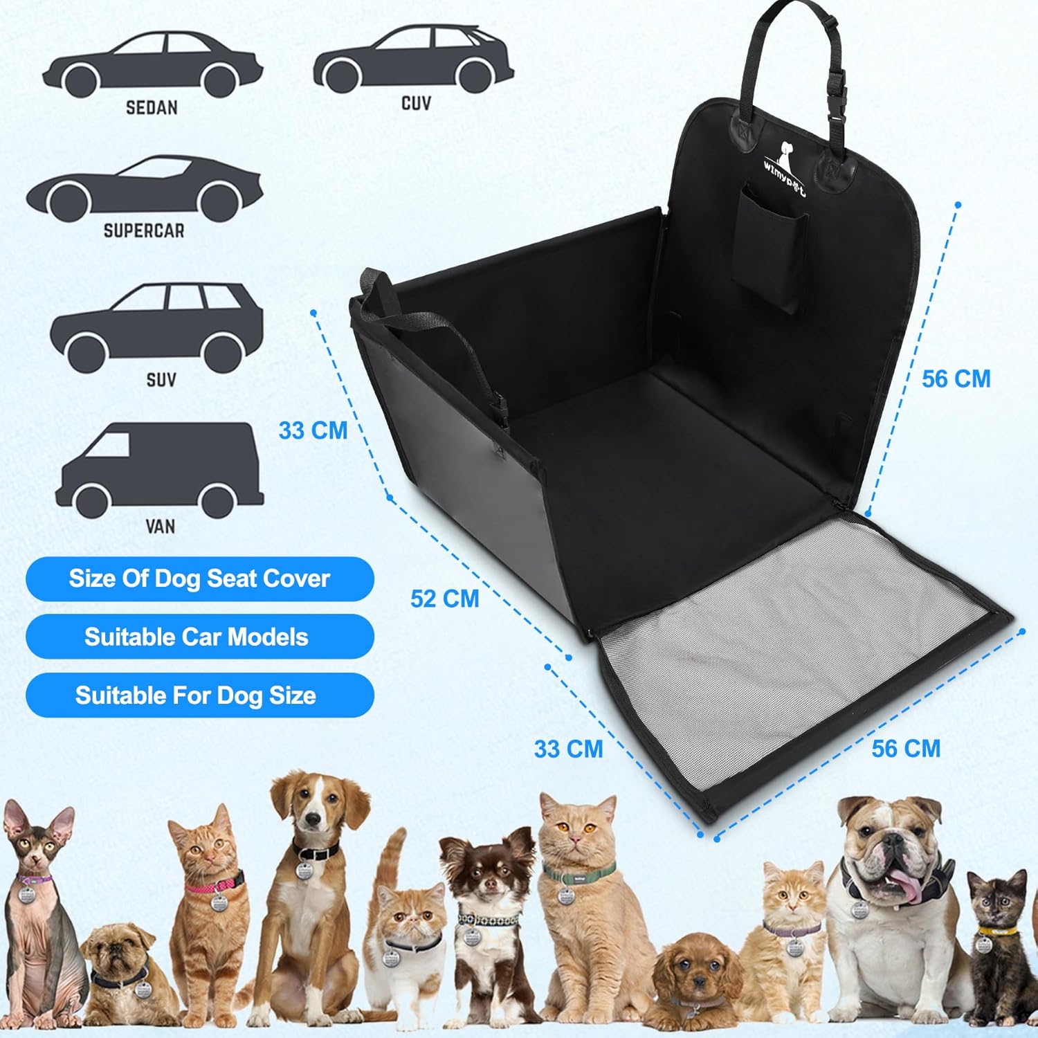 Compatible con Todos los Modelos: El protector es adecuado para cualquier tipo de vehículo, incluyendo camiones, SUV y furgonetas. Sus dimensiones son 59 x 49 x 46 cm, y después de la instalación mide 53 x 51 x 32 cm. Asegúrate de verificar las medidas de tu coche y de tu mascota antes de realizar la compra.