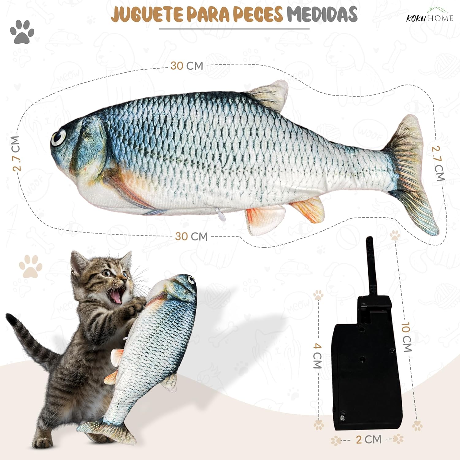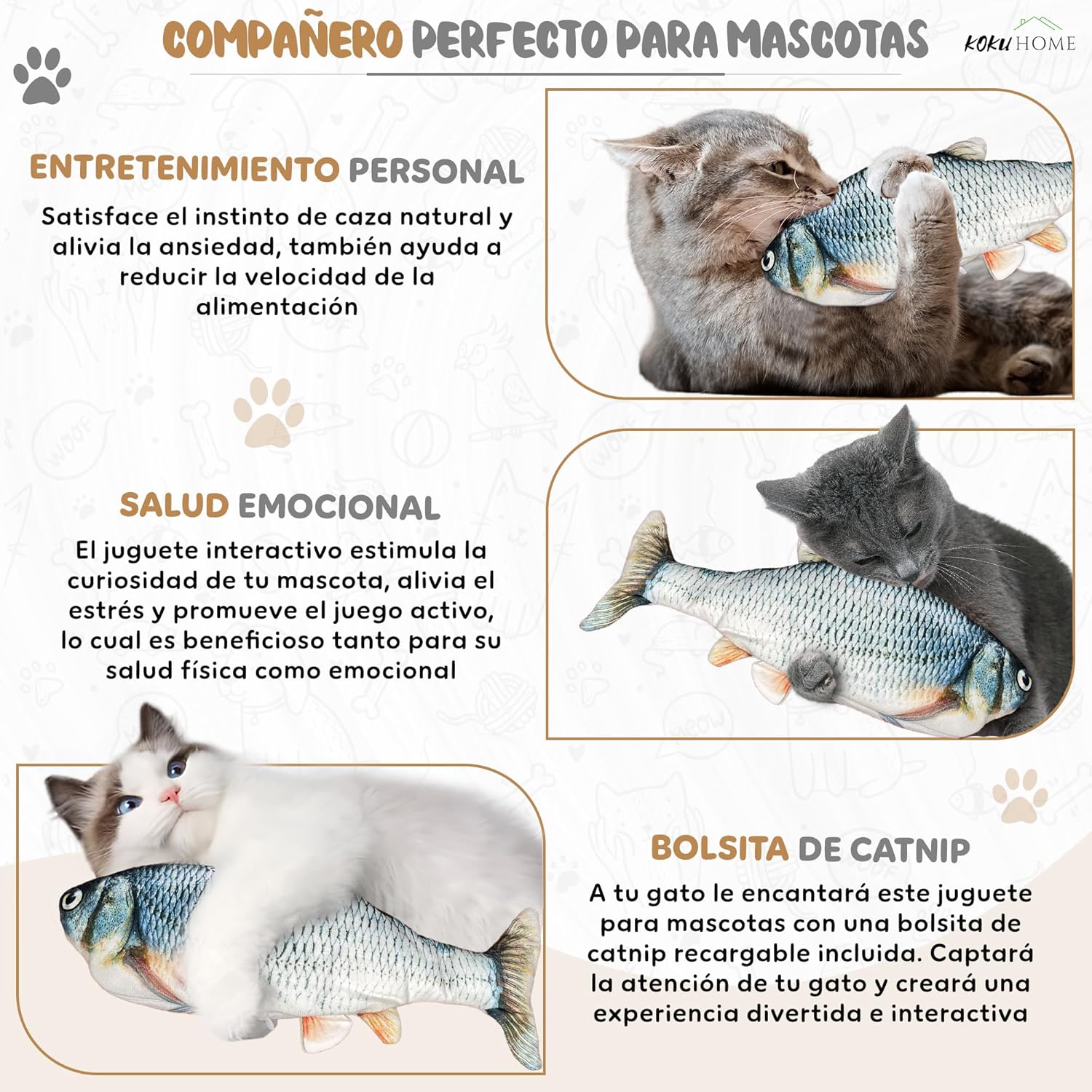 🐾 Diseño entretenido: Este juguete innovador incluye compartimentos que atraen a tus mascotas. Su estructura con cierre protege la batería, prolongando su vida útil. Para reactivar el movimiento del pez, simplemente toque la batería. Gracias a su sensor táctil, el juguete maximiza la diversión de tus gatos.