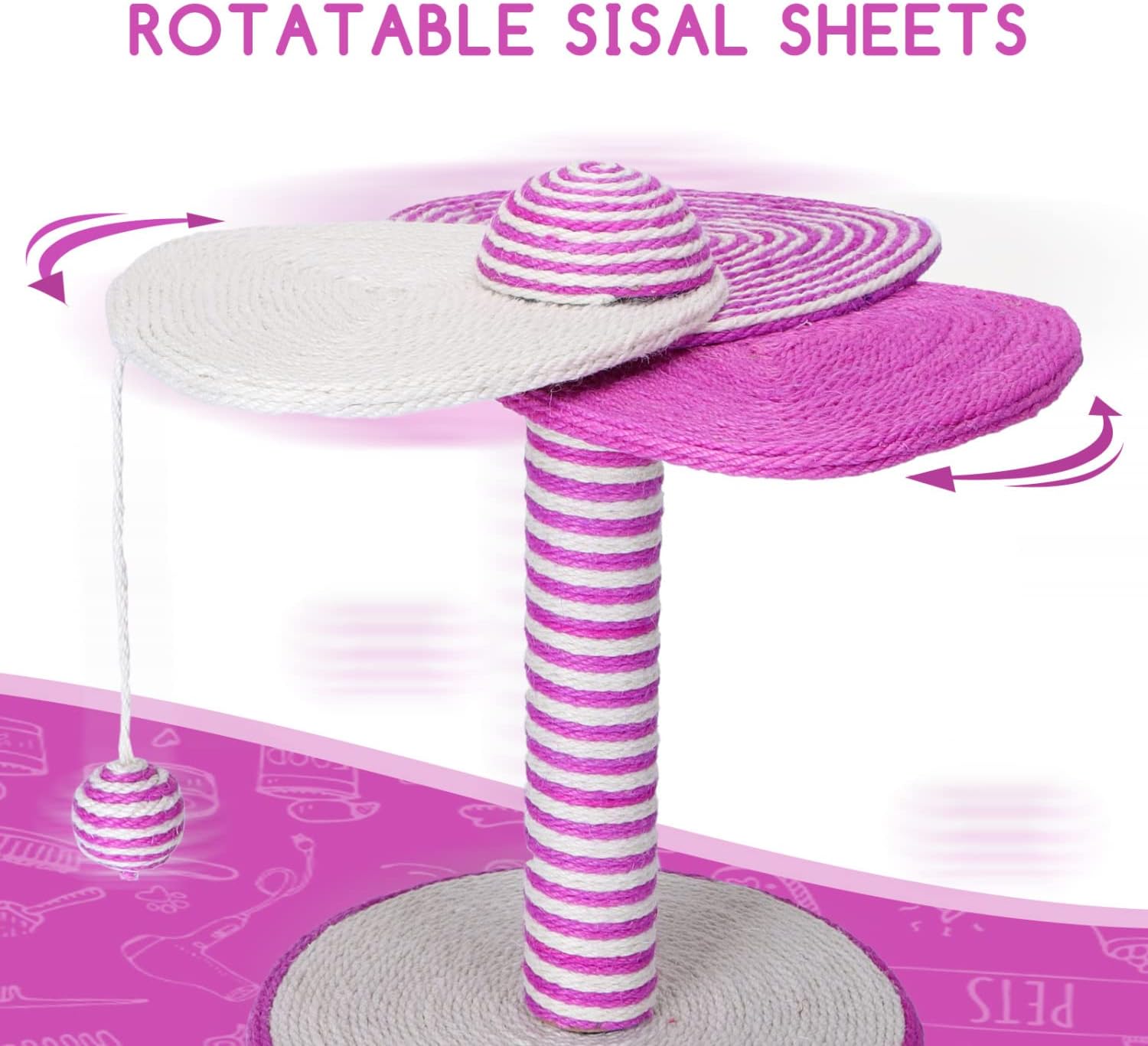 😺 Material de fibra natural de sisal – Este poste rascador para gatos está hecho con materiales seguros y ecológicos. Su superficie está recubierta con fibra de sisal natural, ofreciendo un espacio seguro para que tu gato rasque sin preocupaciones.